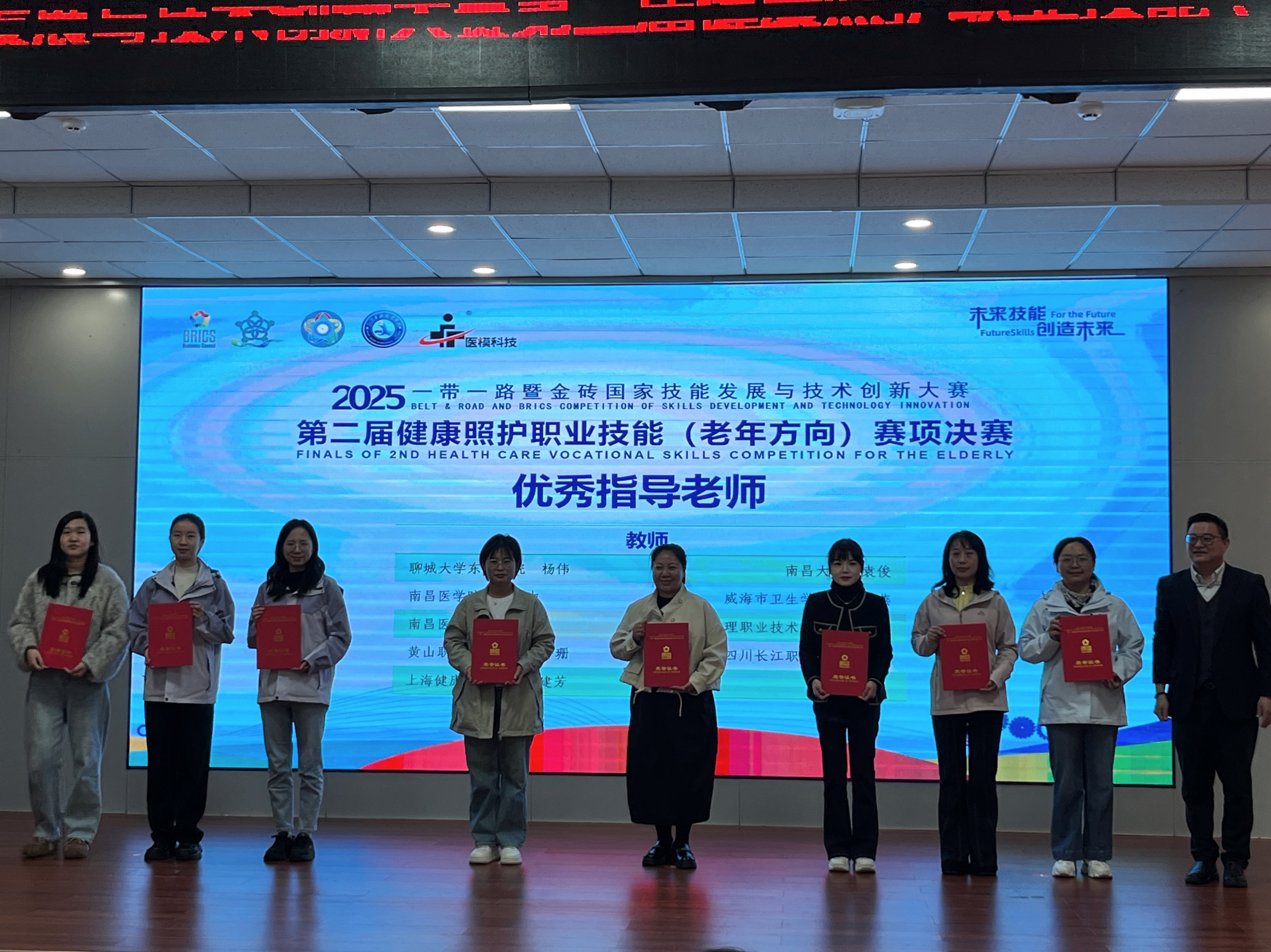 【本网消息】(智慧健康与管理学院 蒋研供稿)近日,2025“一带一路”暨金砖国家技能发展与技术创新大赛之第二届健康照护职业技能(老年方向)竞赛在山东菏泽圆满落幕。本次大赛以“以赛促训、以赛育人”为宗旨,吸引了全国近百所院校的220余名选手同台竞技,为培养适应新时代养老服务需求的高技能人才搭建了交流平台