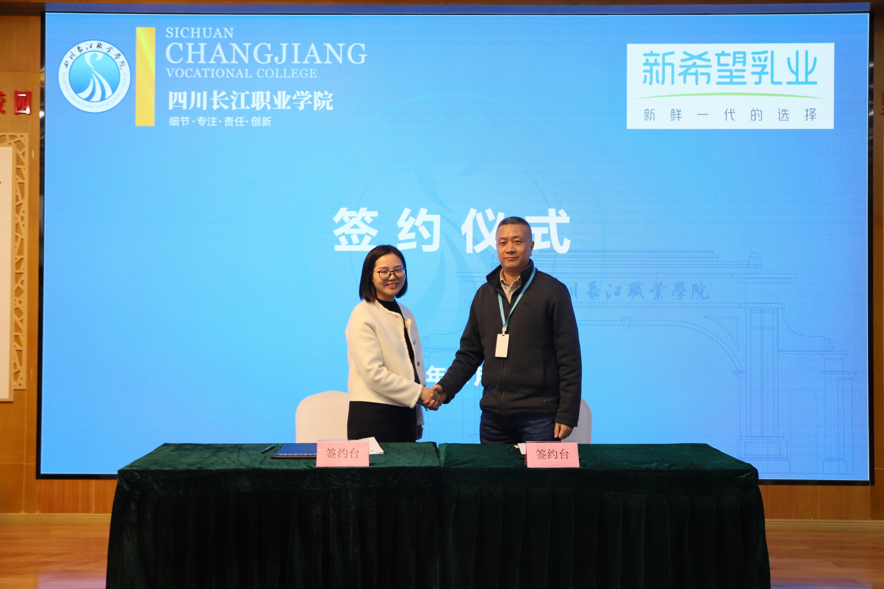 【本网消息】(智慧健康与管理学院 马力供稿)2025年11月4日,四川长江职业学院与新希望生态牧业有限公司校企合作签约暨协同育人基地授牌仪式在学院行政楼三会议厅举行。本次出席仪式的嘉宾有新希望乳业股份有限公司副总裁林永裕、新希望生态牧业有限公司行政人力总监周洋等,我校出席领导为四川长江职业学院校长韩虎、智慧健康与管理学院院长金洪等相关领导及公共管理系师生代表。