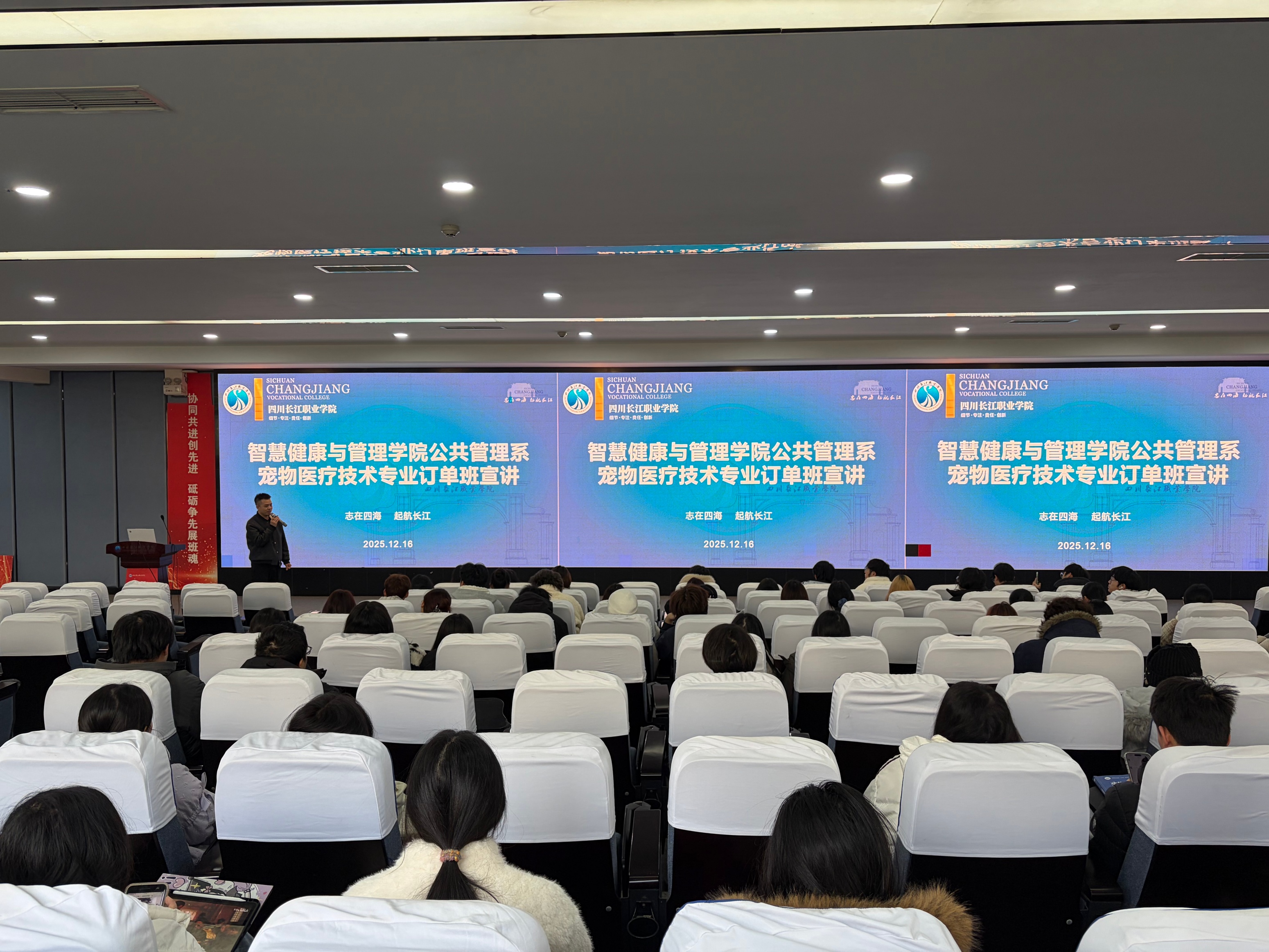 【本网消息】(智慧健康与管理学院 何苗供稿)为深化产教融合,创新人才培养模式,助力学生高质量就业,12月16日,我校宠物医疗技术专业特邀重庆恒鑫励动物医院管理有限公司面向宠物诊疗方向学生,开展了订单班建设专题宣讲会。