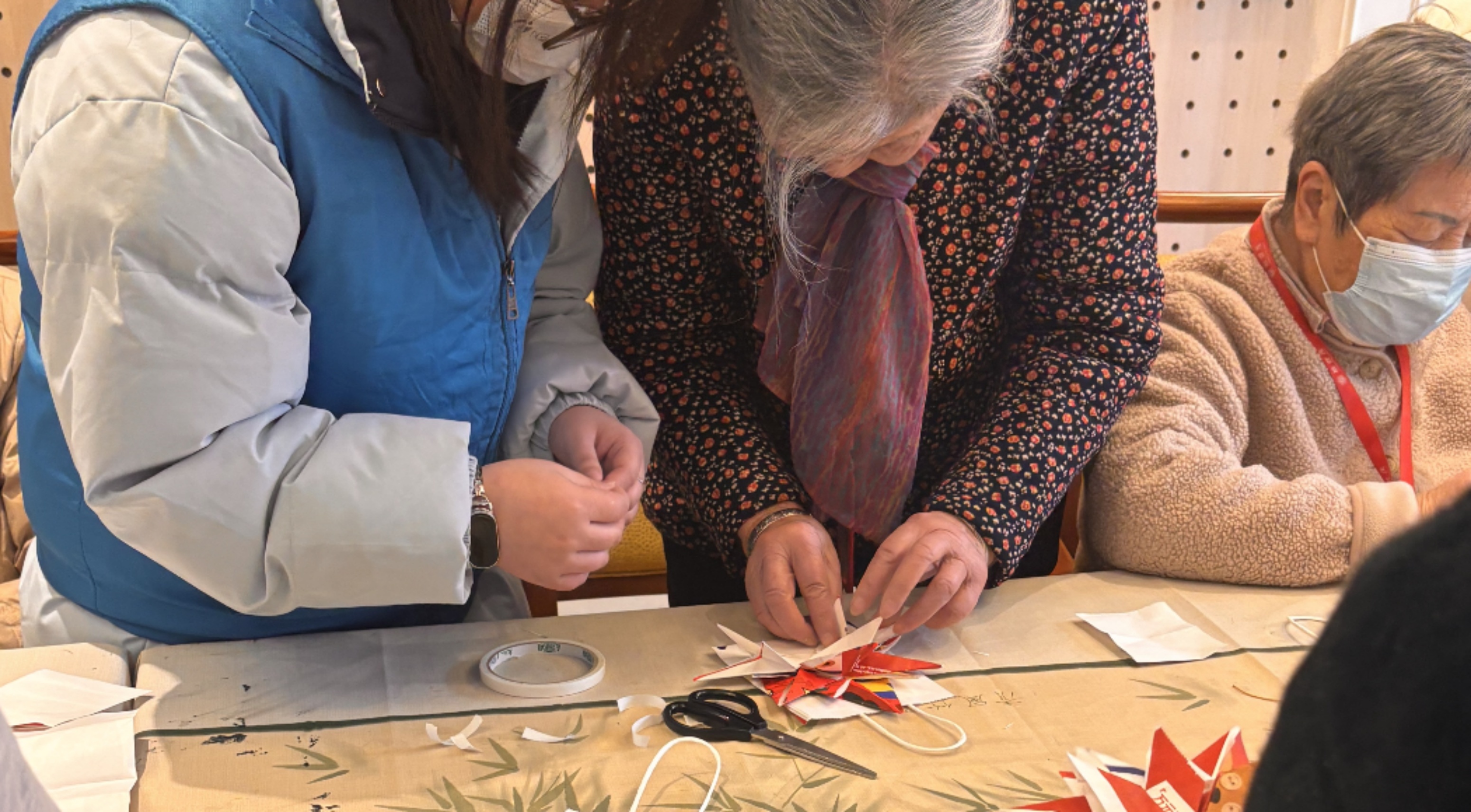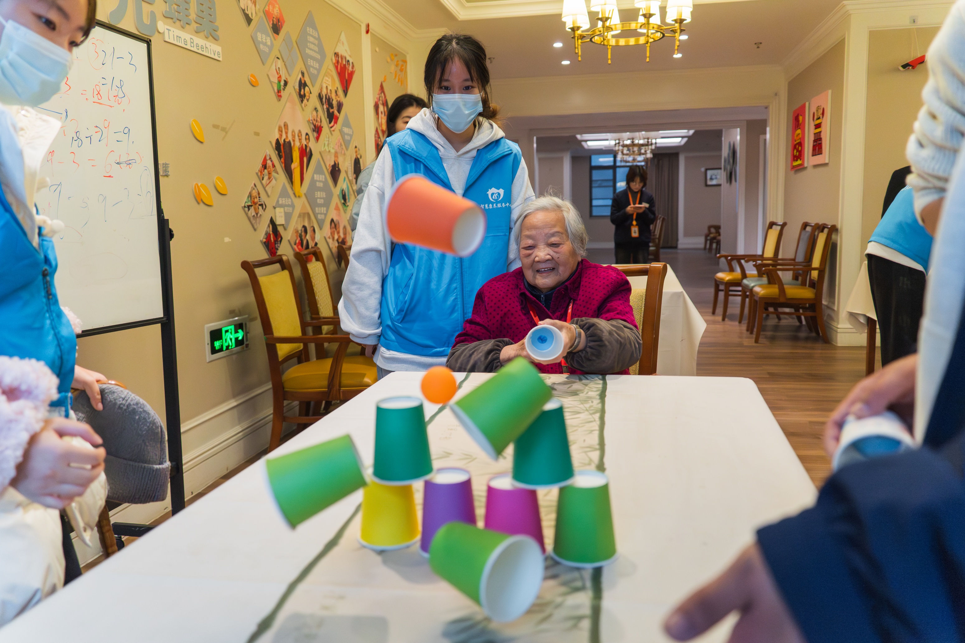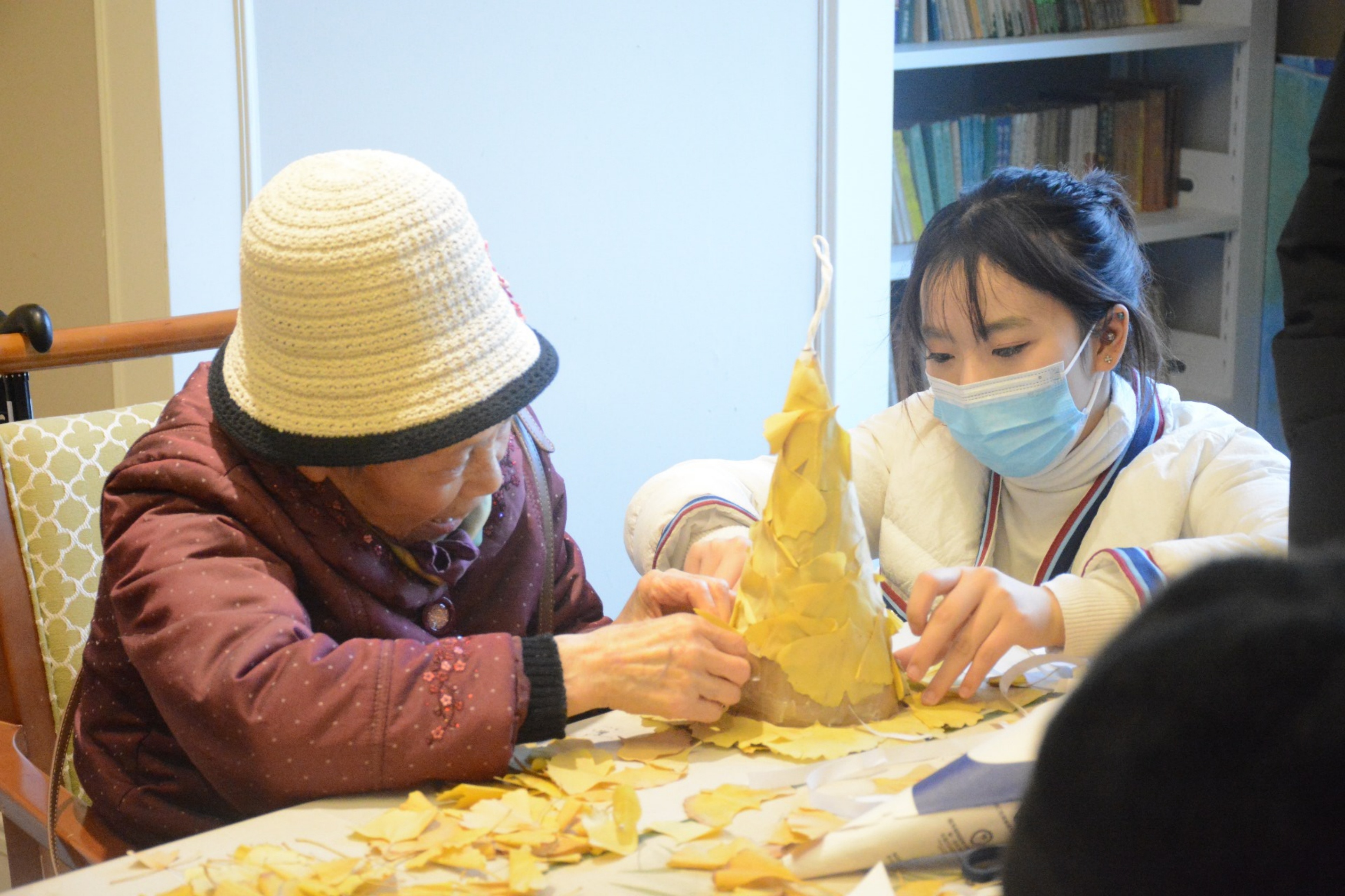 本次活动采用“一班一日一主题”的接力形式。17日,3班的同学们率先化身“银铃伙伴”,与长辈们共同制作“银杏魔法帽”,在手工协作中开启温情序幕。18日,订单班的伙伴们接力陪伴,通过“手工折纸——枫叶”活动,与长者们细心交流,完成一幅幅精美的秋日作品。19日,3班的同学们压轴登场,组织充满趣味的“跳跃乒乓球”游戏,活动现场欢声笑语,将气氛推向高潮。三日的活动,不仅是一次简单的志愿服务,更是一场深入的代际对话与专业实践。“银铃伙伴”们在与长辈的亲密互动中,锻炼了沟通技巧、观察了长者需求、实践了康乐活动组织方法。长者们则在年轻“伙伴”们持续三日的接力陪伴下,感受到了被关注的喜悦与社会联结的温暖,脸上洋溢着快乐的笑容。