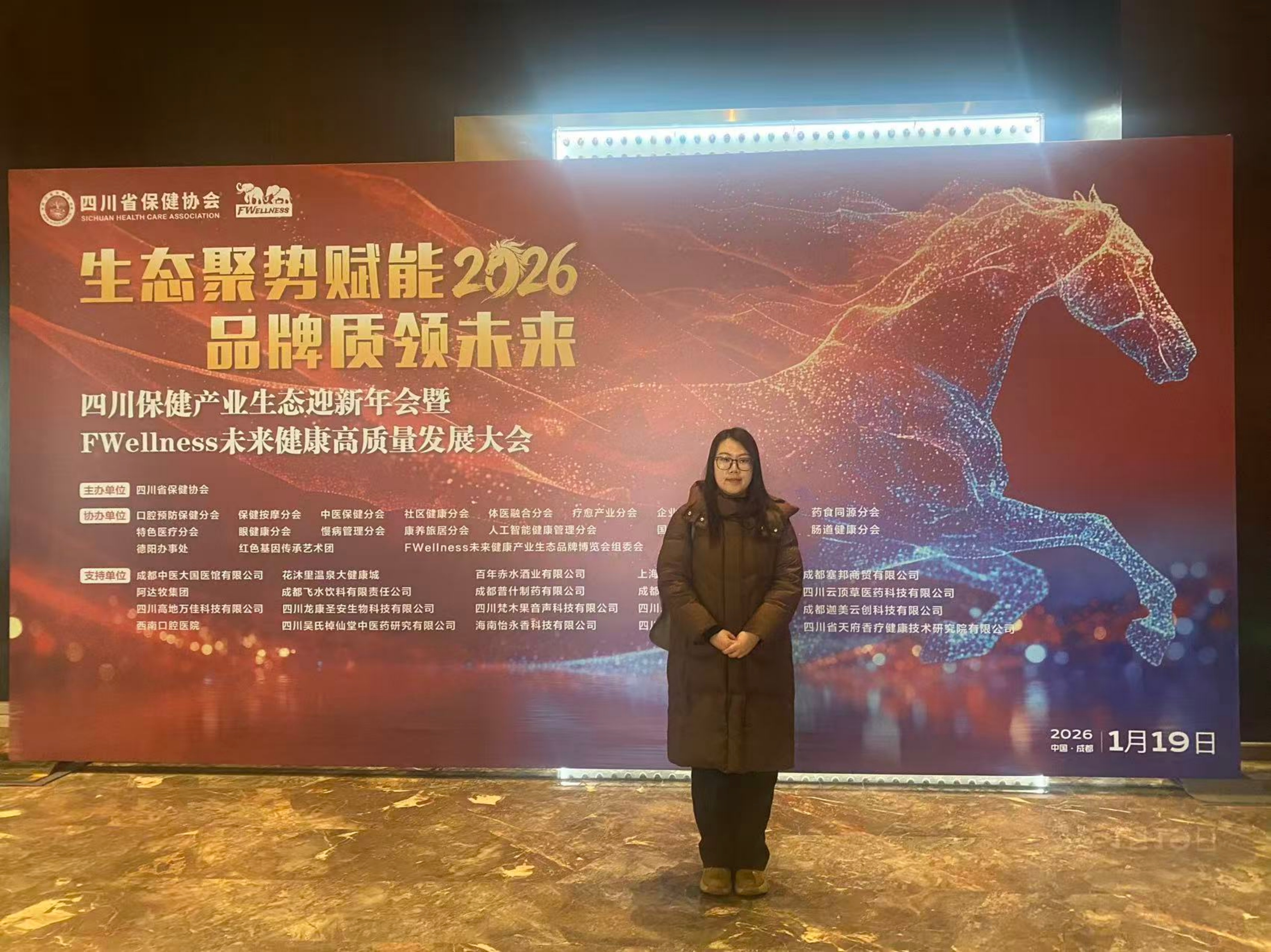 【本网消息】(智慧健康与管理学院 熊珂供稿)为紧跟大健康产业发展步伐,深化产教融合实践,1月19日,四川长江职业学院中医康复岗位教师熊珂受邀出席在成都温江皇冠假日酒店举办的四川保健产业生态迎新年会暨 “FWellness” 未来健康高质量发展大会。本次大会以 “生态聚势赋能・品牌质领未来” 为主题,汇聚政、产、学、研、金、服、用各界代表 500 余人,共话健康产业发展新机遇。