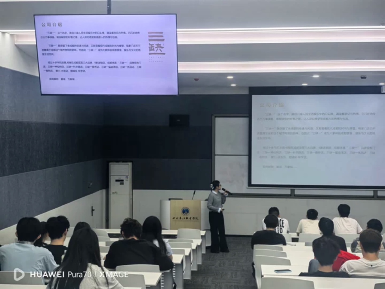 【本网消息】(智慧健康与管理学院 石梦琴供稿)2026年4月17日,工管系烹饪工艺与营养专业实习宣讲会在1211举行。成都味道三缺一餐饮有限公司运营总监刘总、成都中交简州置业有限公司酒店分公司(假日酒店)人力资源经理朱总出席活动,教师石梦琴及24级烹饪1、2班45名学生参会。