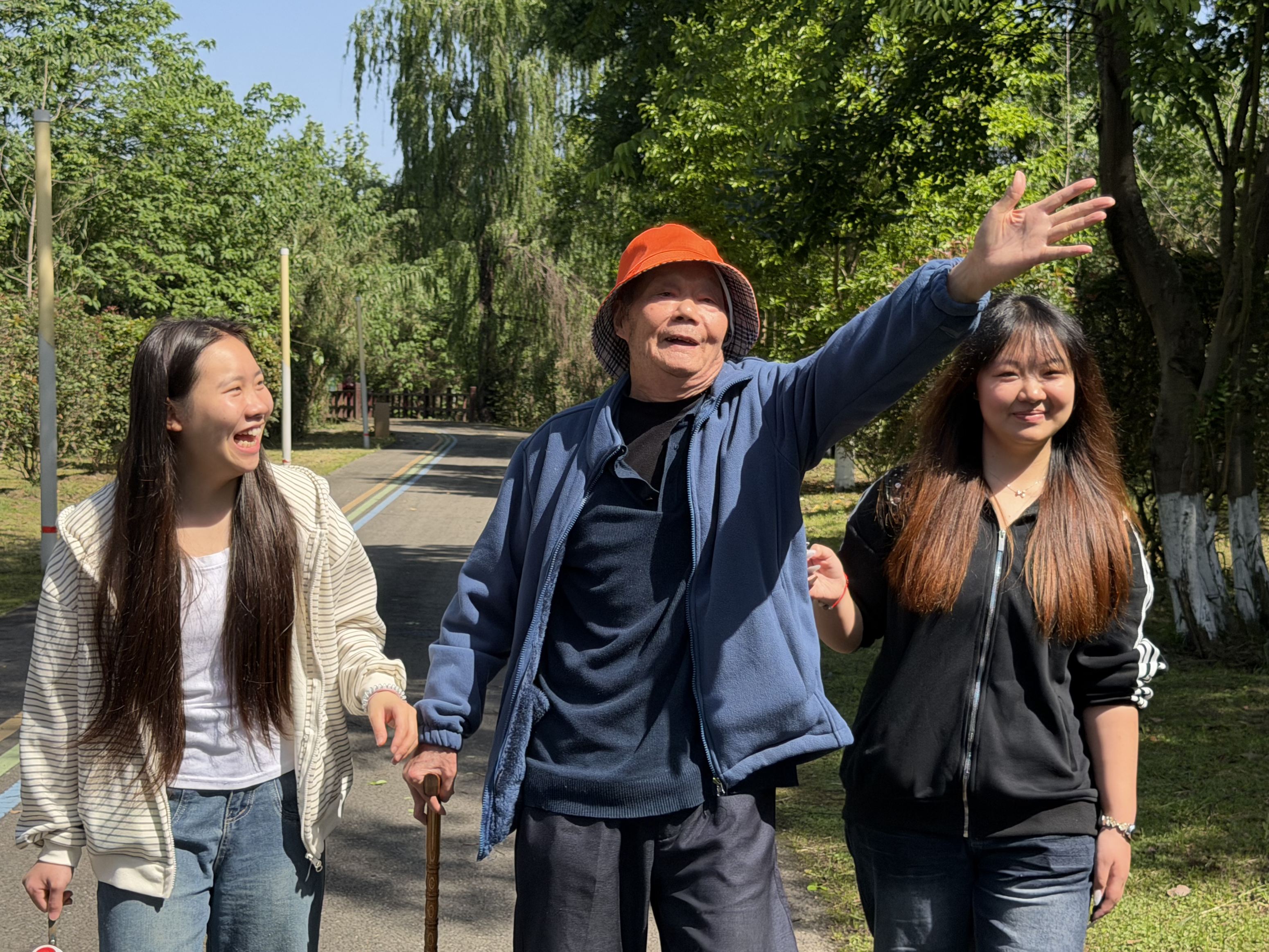 抵达公园后,小伙伴们陪伴长辈们漫步在林荫小道上,陪着长辈们拍照留念,记录下一张张灿烂的笑容,有的长辈兴致高涨,让小伙伴给他们拍合照,有的则兴致勃勃地和家人视频分享着自己年轻时的春游趣事,现场氛围温馨而热烈。