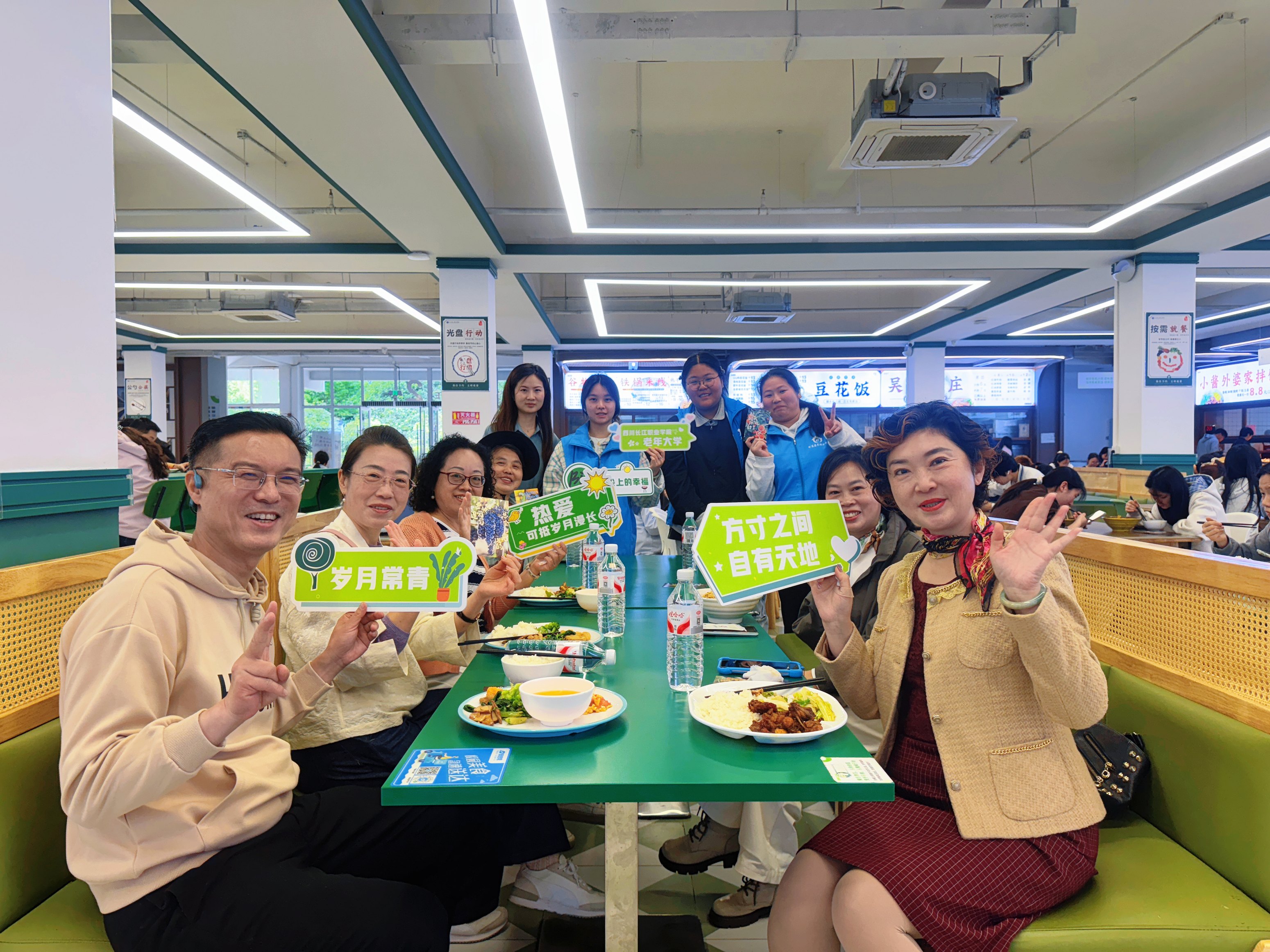 课程前期,工作人员提前做好统筹安排,保障活动有序推进。中午,老年大学志愿者同学举迎接牌来龙站A口等候姐姐们,引导大家有序前往学校并引导姐姐们在学校食堂自主付费就餐,感受校园烟火气;餐后,大家趁着春日暖阳,在校园内散步、休憩,或前往咖啡厅、图书馆静坐畅谈,重温校园时光,放松身心。